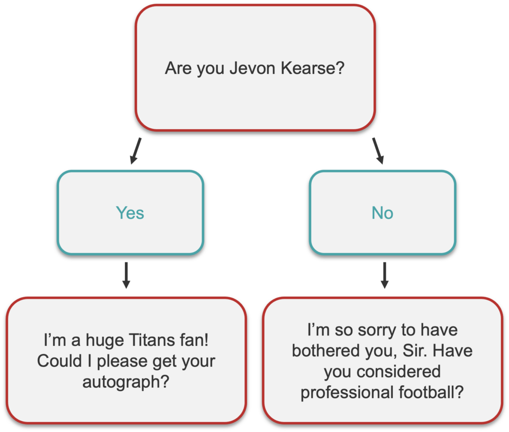 Your question trees are going to be quite a bit more complex than the Jevon Kearse example that I started with. “Are you Jevon Kearse,” after all, is a binary question that’s not going to get you the kind of informative response you seek as a sales professional.